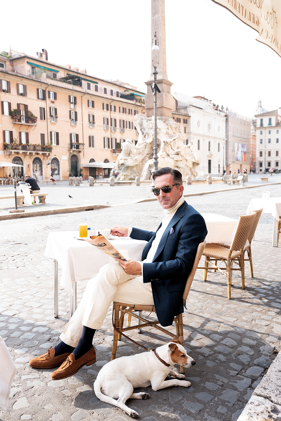 Je vais aussi lancer des chinos et des jeans d’une très belle qualité et avec de beaux détails, mais lavables en machine. Parce que nous sommes toujours tous à la recherche du jean parfait, mais que celui de Kiton coûte près de 1000 euros. Le mien sera fabriqué dans le sud de l’Italie, dans un très beau denim, aura une coupe parfaite ni trop serrée ni trop large, et sera vendu 180 euros. Il devrait être disponible début décembre. »