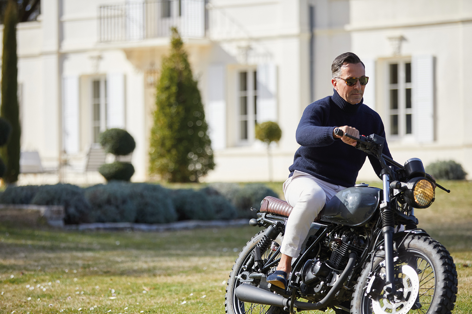 Il est clair que je suis le meilleur ambassadeur de ma marque, mais je ne vais pas brûler mes costumes Cifonelli, j’en ai une cinquantaine, que je porte encore avec grand plaisir, mais depuis que j’ai lancé ma marque je ne porte quasiment plus qu’elle. Ne serait-ce que parce que je veux tester les pièces in situ, apprécier les coupes et les matières et m’assurer que tout est 100% parfait. Je précise qu’il n’y a pas eu d’ajustements pour les photos sur tout ce que je porte : taille, longueur des manches, tout est de série. Pour la première fois depuis trente ans, je porte beaucoup de prêt-à-porter !