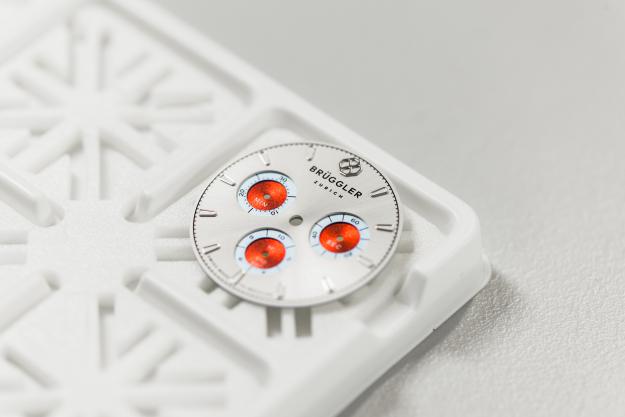 Entièrement fabriquée à la main, le chronographe Brüggler allie une esthétique parfaite et le meilleur du savoir faire de l’horlogerie 100% suisse. Chacune des montres est conçue selon le choix et la volonté du futur acquéreur et assemblée par des artisans d’excellence dont le savoir faire se transmet de génération en génération.