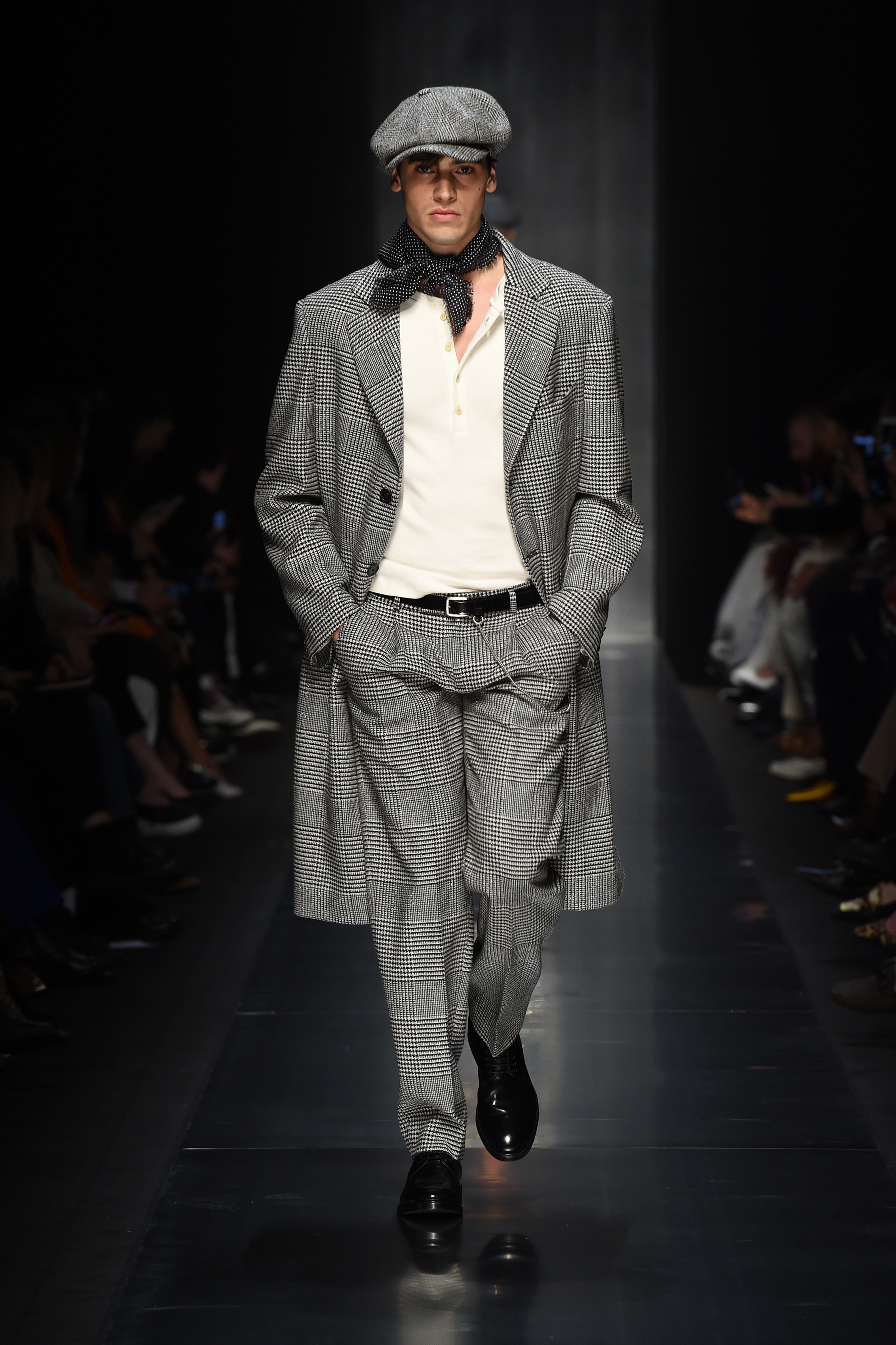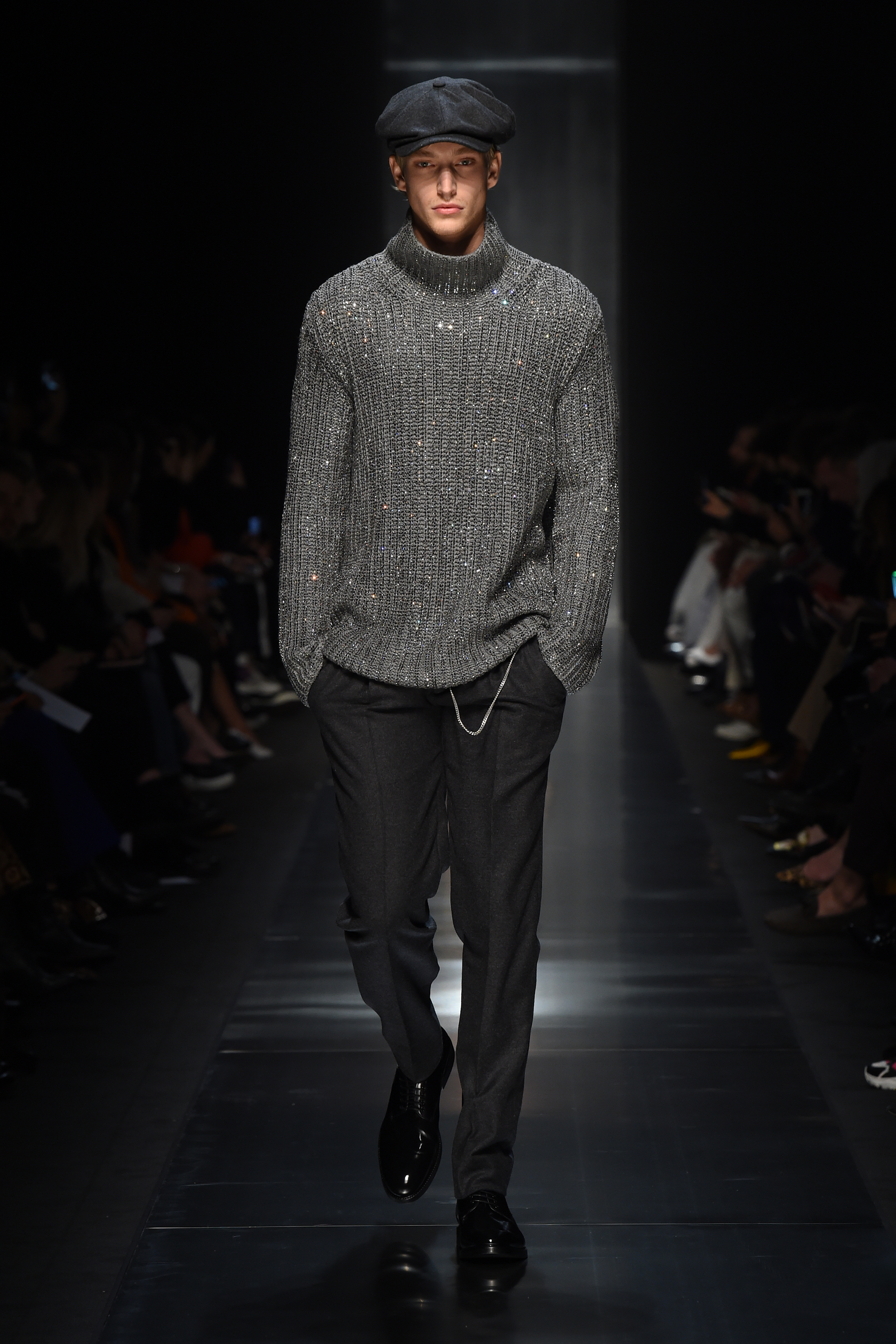 En jouant avec les contrastes masculin/féminin, les hommes puisent également dans la garde-robe féminine. Des pulls étincelants, des fourrures, des écharpes et des chapeaux imprimés d’animaux créent un code de style sans précédent qui n’est pas sans sexe, mais plutôt une interprétation spécifique du même concept esthétique pour Lui et Elle.