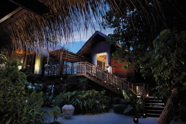 Voilà pour le fond. La forme dépend de l’hôtel sélectionné. Et le choix est large : les 1199 îles de l’archipel, qui s’étend sur 800 km de long et 130 de large à 450 km au sud de l’Inde, en comptent près de 200, dont une vingtaine de 5 étoiles. Le Shangri-La’s Villingili présente la particularité d’être le premier ressort installé au sud de la ligne de l’équateur. Son accès n’est de fait pas le plus rapide : après être arrivé à Malé une dernière heure de vol dans un petit avion nous attend encore, avant l’ultime transfert en bateau (une dizaine de minutes) vers l’atoll d’Addu, situé à l’extrême pointe sud de l’archipel. Mais une fois débarqué du speed boat, vous pouvez larguer vos amarres, relâcher vos défenses et oublier l’activité frénétique de la vie européenne : ici vous êtes coupé du monde et du temps, et êtes sensé n’avoir plus qu’un unique sujet de préoccupation : votre bien-être et celui de qui vous accompagne. Lequel est aussi, visiblement, le principal sujet de préoccupation du personnel de l’hôtel.