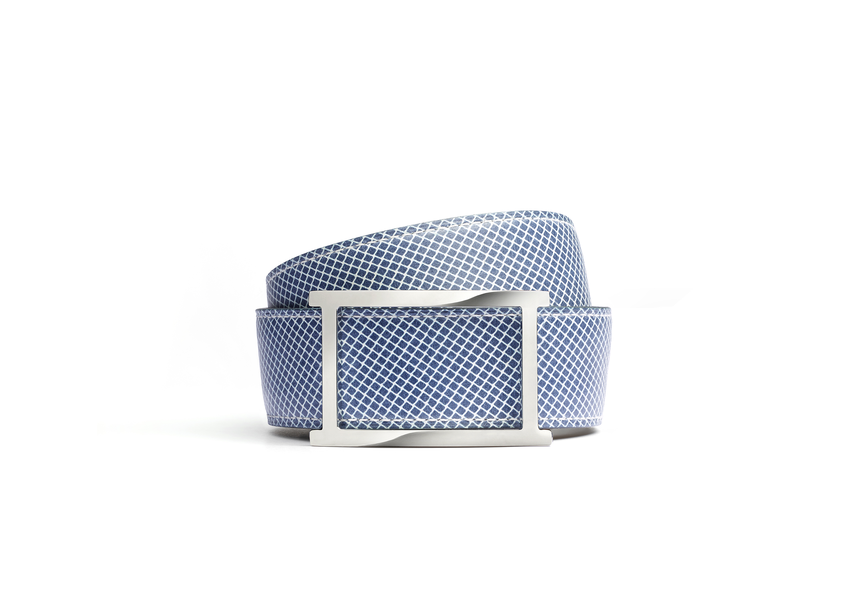 La compétition s’exporte aussi aux accessoires, qui reprennent les codes emblématiques du tournoi. La ceinture Vice Versa se complait au double-jeu, et arbore une face en suède bleu, une autre quadrillée. Une petite pochette se met également au parfum, imprimée let sur fond azur.