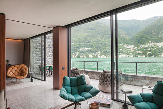 Sur tout son pourtour, celui-ci est bordé de propriétés aux allures viscontiennes, architectures majestueuses et jardins luxuriants, et de vieux palaces célèbres, comme la Villa d’Este et la Villa Serbelloni, qui ont accueilli des milliers de couples d’amoureux, légitimes ou pas. Il sert désormais aussi d’écrin au Sereno, nouvel établissement 5 étoiles dont l’offre contemporaine constitue une alternative inattendue à celle de ses ainés.