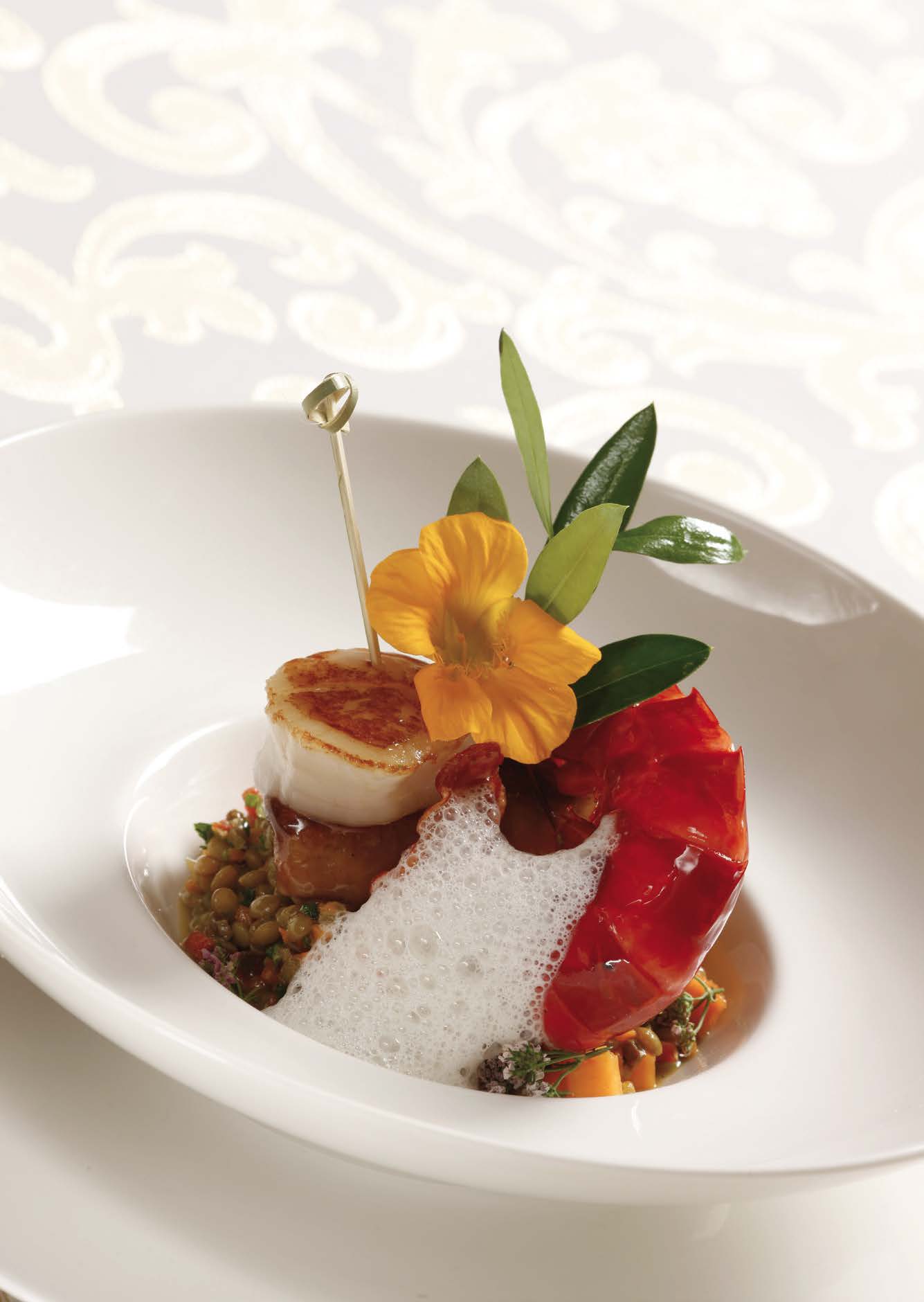 Il serait injuste, présentant les prestations du Es Saadi, de ne pas mentionner la qualité de la cuisine, fine dans tous les restaurants de l’établissement et carrément gastronomique à la Cour des Lions, le restaurant haut de gamme de l’hôtel dont le décor de style arabo-andalou, tout de dentelle de pierre et de plâtre sculpté, offre une vue panoramique sur l’Atlas. Le jury du Festival du Film de Marrakech en fait chaque année une annexe du gotha du cinéma international. Les fruits et légumes que l’on y déguste proviennent, comme dans les autres restaurants de l’hôtel, de la propriété agricole de la vallée de l’Ourika où se trouvent le potager et le verger bio de la famille Bauchet-Bouhlal. Des exemples pour vous mettre l’eau à la bouche ? Que diriez-vous d’un médaillon de homard rôti aux sept légumes, d’une souris d’agneau confite aux zestes d’oranges accompagnée d’un écrasé de pommes de terre a l’huile de truffe ou, en dessert, d’un tajine de fruits avec poire tie de farcie a la cre me d’amande ? Maintenant, imaginez ce festin savouré face à un décor à couper le souffle, ou dans une villa d’inspiration mauresque, romaine ou andalouse, songez à une exposition permanente à faire rougir n’importe quelle galerie, sachez que la limousine de l’hôtel (Audi A8 ou Chrysler 300) vous amènera de l’aéroport en un petit quart d’heure, et vous n’aurez plus aucune excuse pour votre prochain week-end…