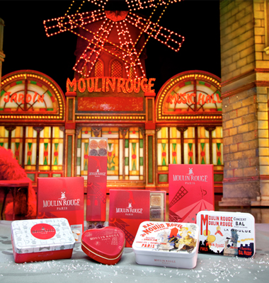 Disponibles dans des points de vente sélectifs telles les épiceries fines, les boutiques cadeaux et le site marchand du Moulin Rouge.