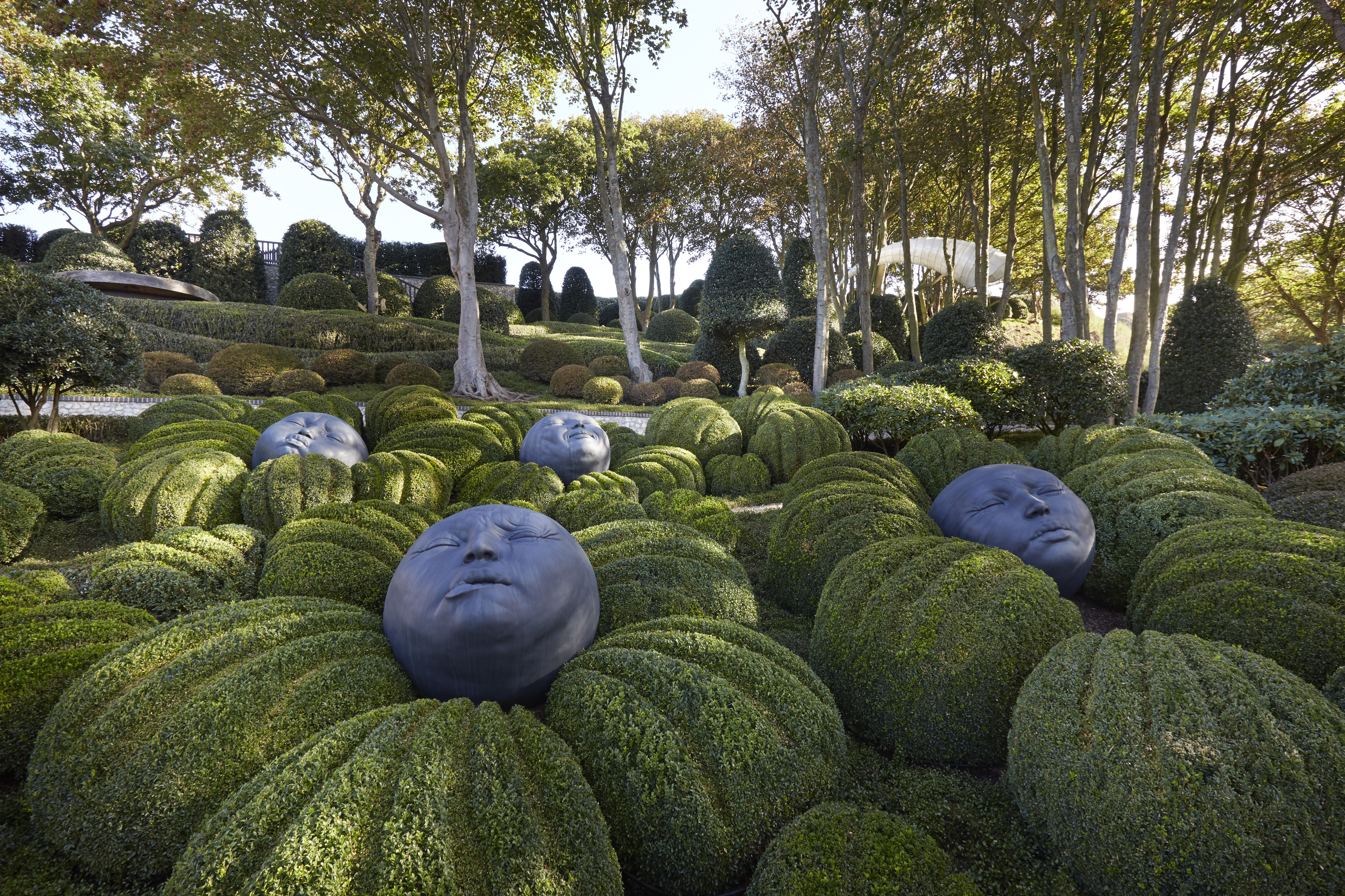 Au détour des jardins, on croise ainsi les visages lunaires de l’artiste espagnol Samuel Salcedo, nichés entre topiaires aux formes délicates et andromèdes campanulées, ou encore les objets paysagers de l’allemand Thomas Rösler. Cet été, l’artiste moscovite Sasha Frolova y présente une œuvre spécialement créée pour Les Jardins d’Etretat. Il s’agit d’un trampoline conçu en référence au boudoir de Marie-Antoinette. Le concept artistique de cette création se revendique hommage à la nature avec une référence aux premières fermes ostréicoles, lesquelles furent créées à Etretat par Marie-Antoinette. Née en 1984, Sasha Frolova est une qui étudia auprès du créateur de mode Andreï Bartnev. Artiste et performiste Sasha Frolova fut notamment la lauréate du trophée « Andrew Logan’s Miss World », fondé par le styliste britannique éponyme.