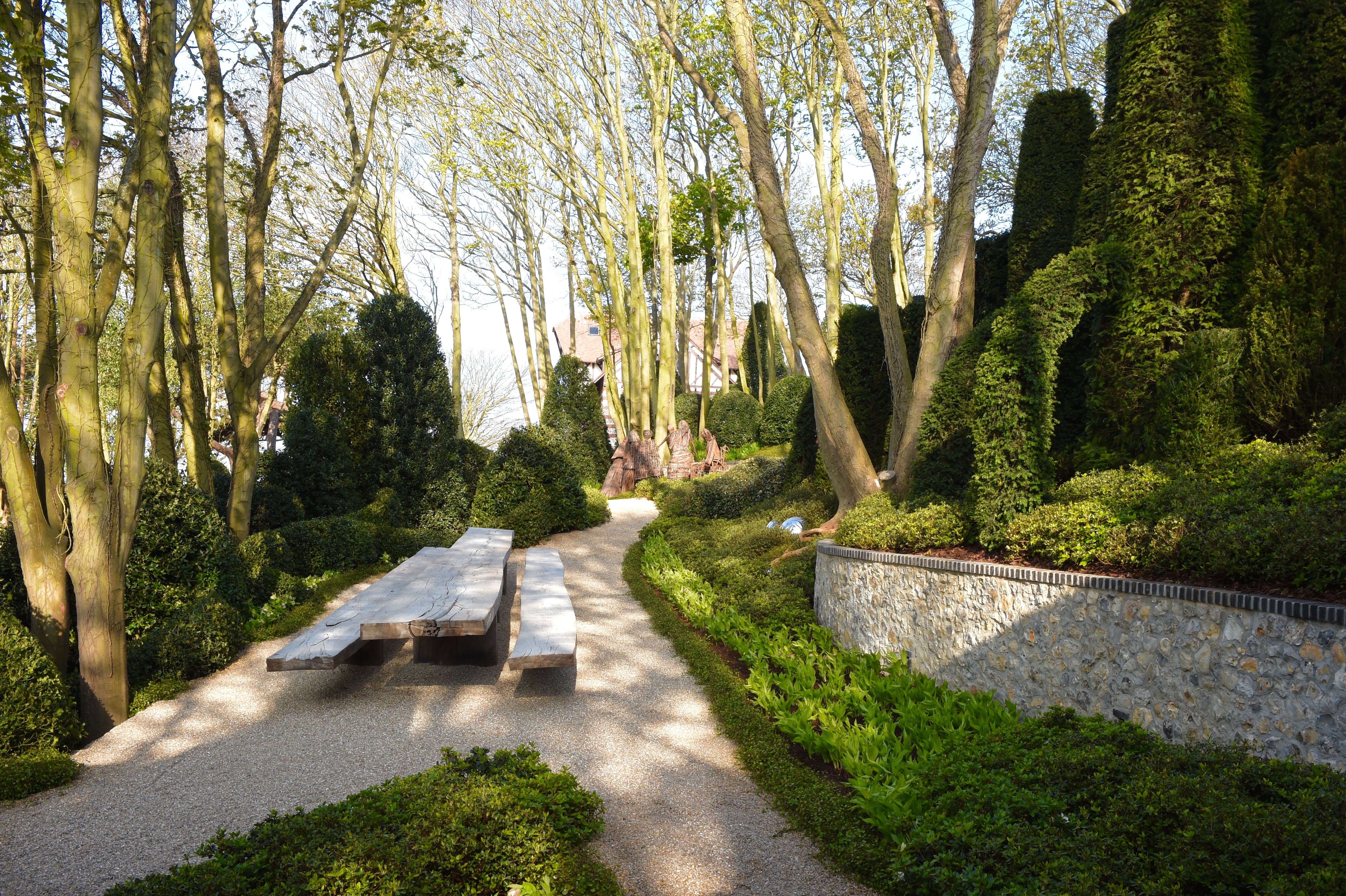Si dans de nombreuses disciplines artistiques, le courant de pensée néo-futuriste s’est développé ce début de XXIème siècle, l’art du jardin était resté jusqu’à présent en retrait. Etretat compte ainsi le premier jardin expérimental correspondant au courant de l’architecture bionique dont la composition et les lignes sont empruntées aux formes naturelles, c’est-à-dire biologiques. On retrouve ainsi à Etretat, des éléments du paysage de la côte d’Albâtre, entre les falaises ou la Manche. En conséquence, un intense travail est mené ici dans l’art de la taille. A cela s’ajoutent des oeuvres néo-futuristes.