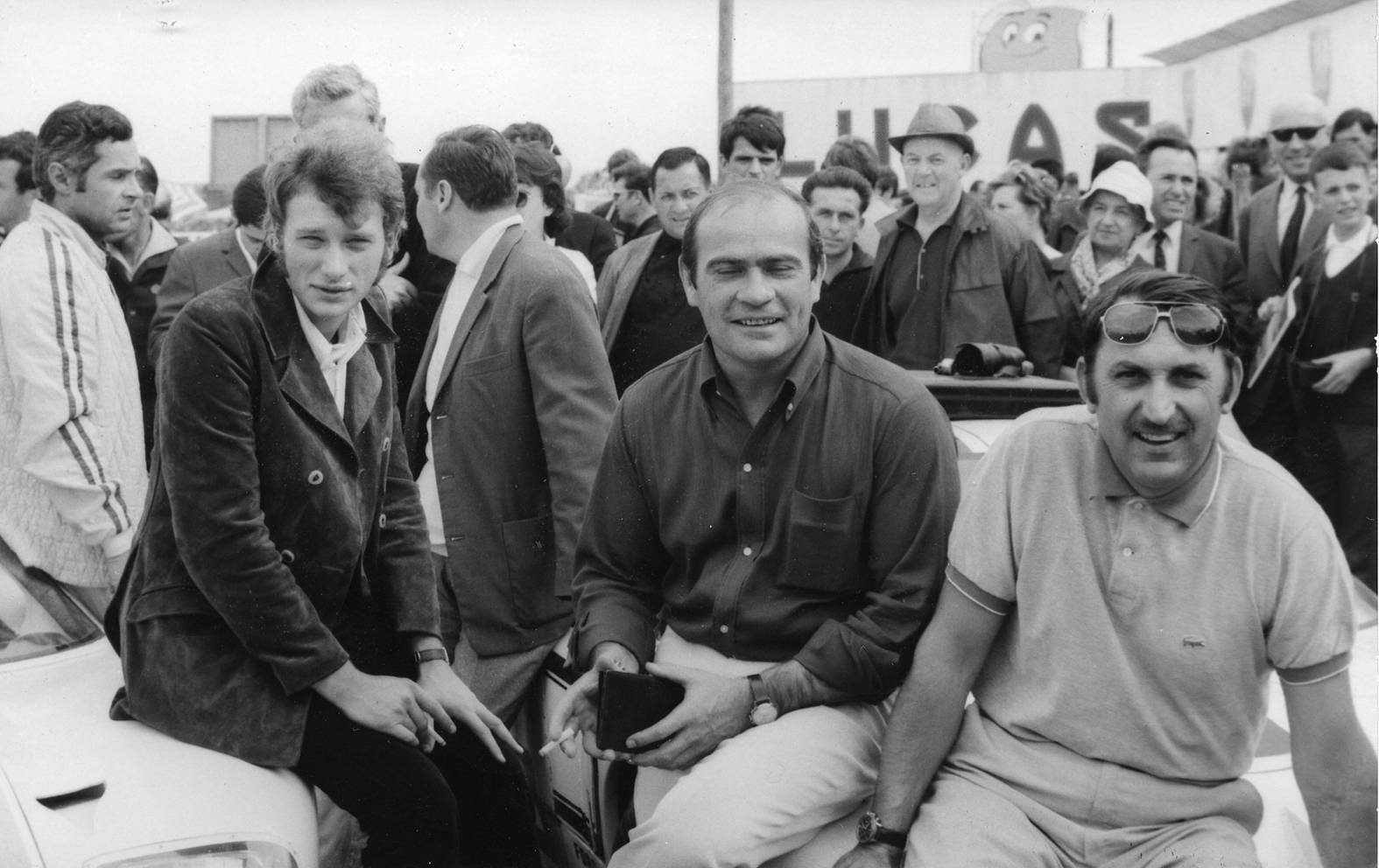 - 1967 Henri Chemin Johnny Hallyday Guy Ligier et Jo Schlesser 889- Crédit Photos – Automobile Club de l’Ouest