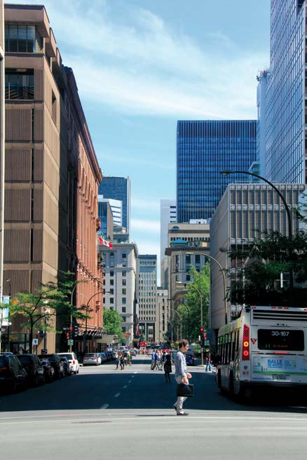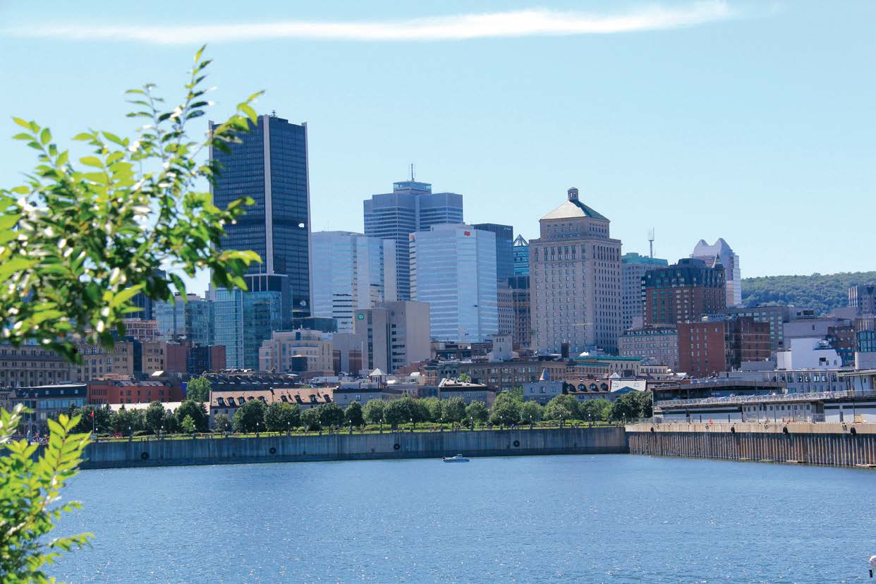 Le quartier du vieux Montréal avec au fond ses gratte-ciel.