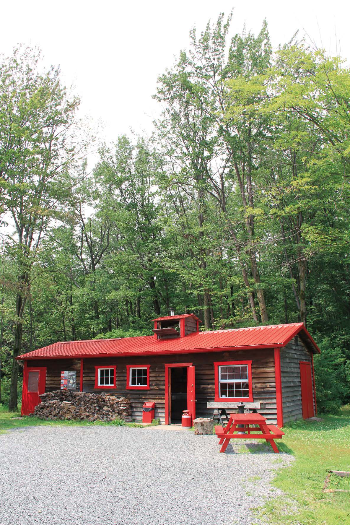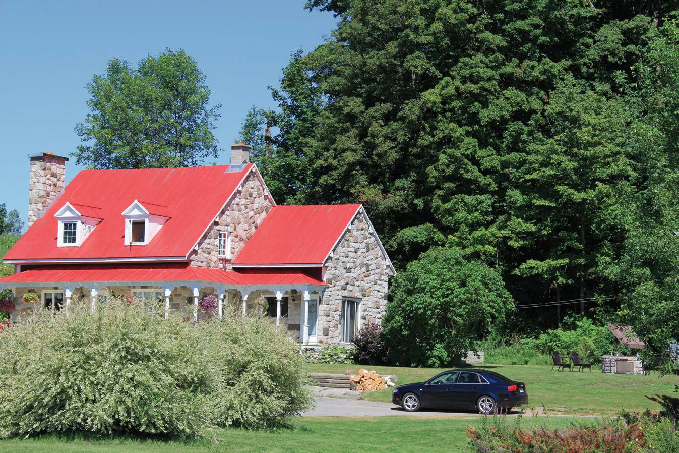 L’une des maisons à toits rouges de l’île d’Orléans. En dessous, la cabane à sucre « Chez Dany » tout près de Trois Rivières.