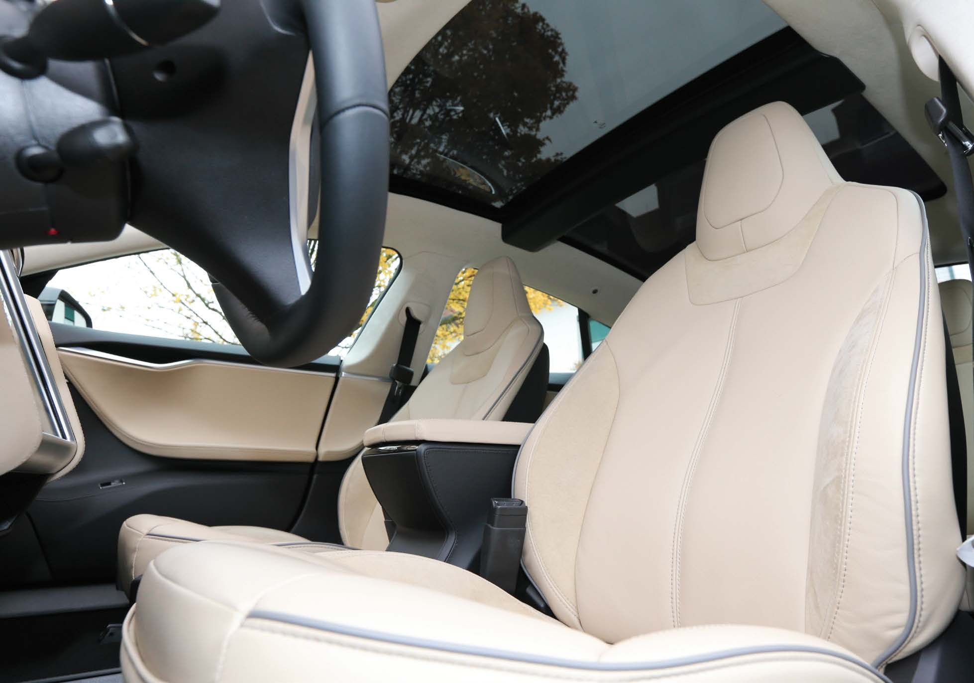 Prendre de son envol est bien le terme adéquat quand l’engin s’anime. Le silence est total et la suspension pneumatique active donne l’impression de planer au-dessus du sol. Jusqu’à 50 km/h, la Tesla S peut rivaliser avec une Rolls-Royce Phantom en matière de confort. Au-delà, c’est à une autre concurrente qu’elle s’attaque.