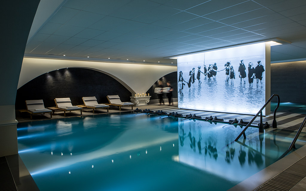 La Société des Bains de Mer s’y installe en 1959 pour terminer en MGallery Thalasso Sea et Spa du groupe Accor. Dès qu’on franchit le seuil on est époustouflé par la beauté de sa façade néo-classique. La rénovation, confiée à l’architecte Jean-Philippe Nuel, est une totale réussite. L’aspect Belle Epoque est toujours là. Les tons doux comme les beiges et les gris naturels confèrent une douceur qui aide au lâcher-prise. Avec ses 103 chambres et ses 6 suites décorées dans des tissus de qualité, des fresques en noir et blanc qui rappellent ce passé de l’entre deux guerres, des lustres en nacre, des petits canapés et fauteuils aux couleurs pastels. On est dans l’intime et le feutré.